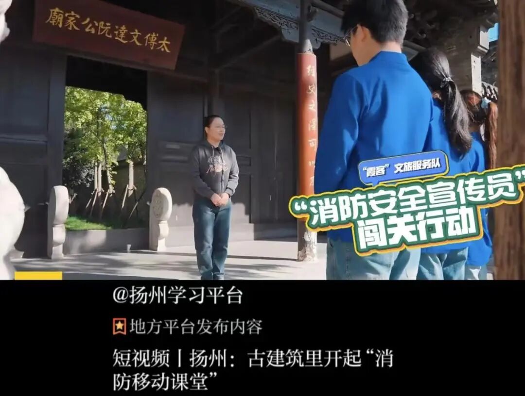 名城旅发公司联合扬州职业技术大学、扬州市消防救援支队出品的文保古建筑消防安全宣传视频,11月10日,正式被国家级平台“学习强国”APP录用发布。作为全国“安全生产月”活动的特色内容,该视频聚焦扬州珍贵文物古建筑的消防安全核心需求,以直观生动的影像语言,清晰讲解火灾风险隐患、日常防范要点及应急处理措施,实现知识性、科普性与警示性的有机统一。视频通过权威平台的广泛传播,既展现了企业履行安全生产主体责任、守护城市历史文脉的担当,更创新了“政、校、企”协同共筑文物安全防线的有效模式,让安全理念深入人心。